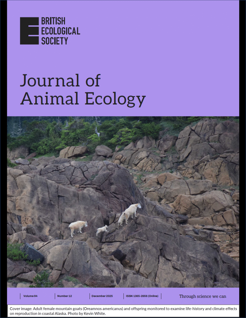White, K. S., Levi, T., Hood, E., & Darimont, C. T. (2025). Life-history trade-offs and environmental variability shape reproductive demography in a mountain ungulate. Journal of Animal Ecology, 00, 1–17. Open Access.